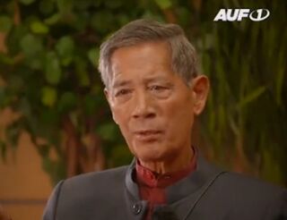 Sucharit Bhakdi bei AUF1 TV, im Gespräch mit Vivien Vogt in Wien im September 2022. Bhakdi wiederholt seine Behauptung dass COVID-19 Impfungen tödlich seien. Zu diesem Zeitpunkt waren bereits 68% der Weltbevölkerung geimpft worden, und 12,7 Milliarden Impfdosen verimpft worden