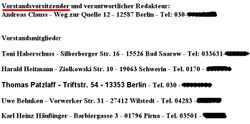 Impressum des Vereins "Autarkes Leben" vom Juli 2008