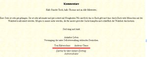 Eintrag aus dem Gästebuch bei "Der runde Tisch Berlin"[21]