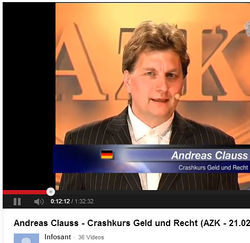 Öffentlich stellte sich Clauss gerne als ehemaliger Finanzdienstleister dar, der es sich inzwischen (quasi geläutert) als "Finanzsystem-Kritiker" zur Aufgabe gemacht habe, Kleinanleger vor letztendlich unrentablen Aktienanlagen und Investitionsmodellen zu schützen, da es sich beim Aktienmarkt um ein globales Monopolyspiel handele, in dem für Kleinanleger nichts zu gewinnen sei. In diesem Zusammenhang behauptete Clauss auch, dass in wirtschaftlichen Krisenzeiten Unternehmen ihre Schulden durch Verzicht von Gläubigern tilgten und sich in Krisenzeiten der Aktienmarkt quasi aufblähe, da im eigentlichen Wirtschaftssektor kein Geld verdienbar sei. Letztendlich wendet sich Clauss gegen jegliche Investion, bei der aus seiner Sicht kein realer Gegenwert zur Verfügung steht.