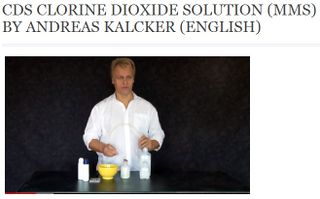 "Andreas Kalcker „Sagt zu den Ärzten: Ja, ja nächstes Jahr. Die Operation – nach dem Urlaub, dem Sommerurlaub, dem Winterurlaub. Dann – ach, machen Sie noch mal eine Untersuchung, ist schon so lange her. Ich kann erfahrungsgemäß sagen, dass Darmkrebs sich sehr gut behandeln lässt mit MMS [...]“