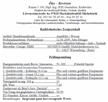 - ↑ Wunder-Wasser AquaElix Prismamagazin – Zeitschrift für ganzheitliches Leben in Bayern, Ausgabe Nr. 55