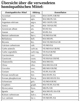 - Kombination aus der Biochemie nach Schüßler (mit Schüßler-Salzen) und der Astrologie