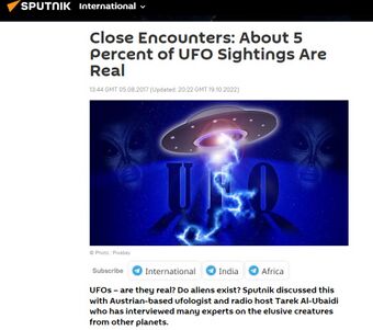 Russischer Regierungssender Sputnik (SNA): Tarek Al Ubaidi weiss dass 5% aller UFO-Sichtungen "real" sind