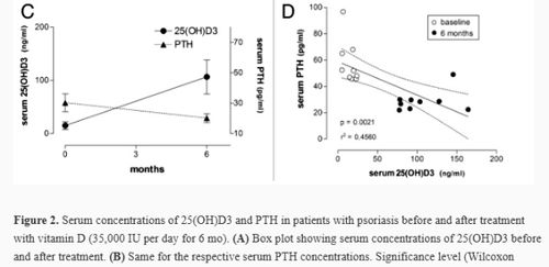 - ↑ Finamor DC, Sinigaglia-Coimbra R, Neves LC, Gutierrez M, Silva JJ, Torres LD, Surano F, Neto DJ, Novo NF, Juliano Y, Lopes AC, Coimbra CG. A pilot study assessing the effect of prolonged administration of high daily doses of vitamin D on the clinical course of vitiligo and psoriasis. Dermatoendocrinol. 2013 Jan 1;5(1):222-34. doi: 10.4161/derm.24808 - PMID: 24494059