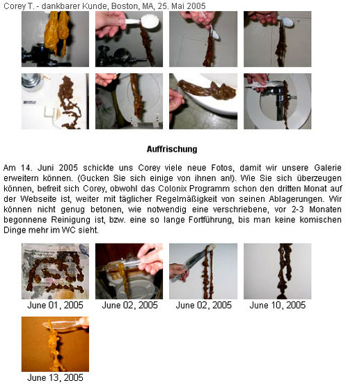 Ein sehr ähnlicher Geschäfts-Hoax ist die so genannte Leberreinigung, die in verschiedenen Varianten im Internet beworben wird (siehe auch: Andreas Moritz). Dabei entstehen während der Einnahme der gekauften "Leberreinigungs-Mittel" eindrucksvolle so genannte Seifensteine (soap stones), die über den Darm ausgeschieden werden.