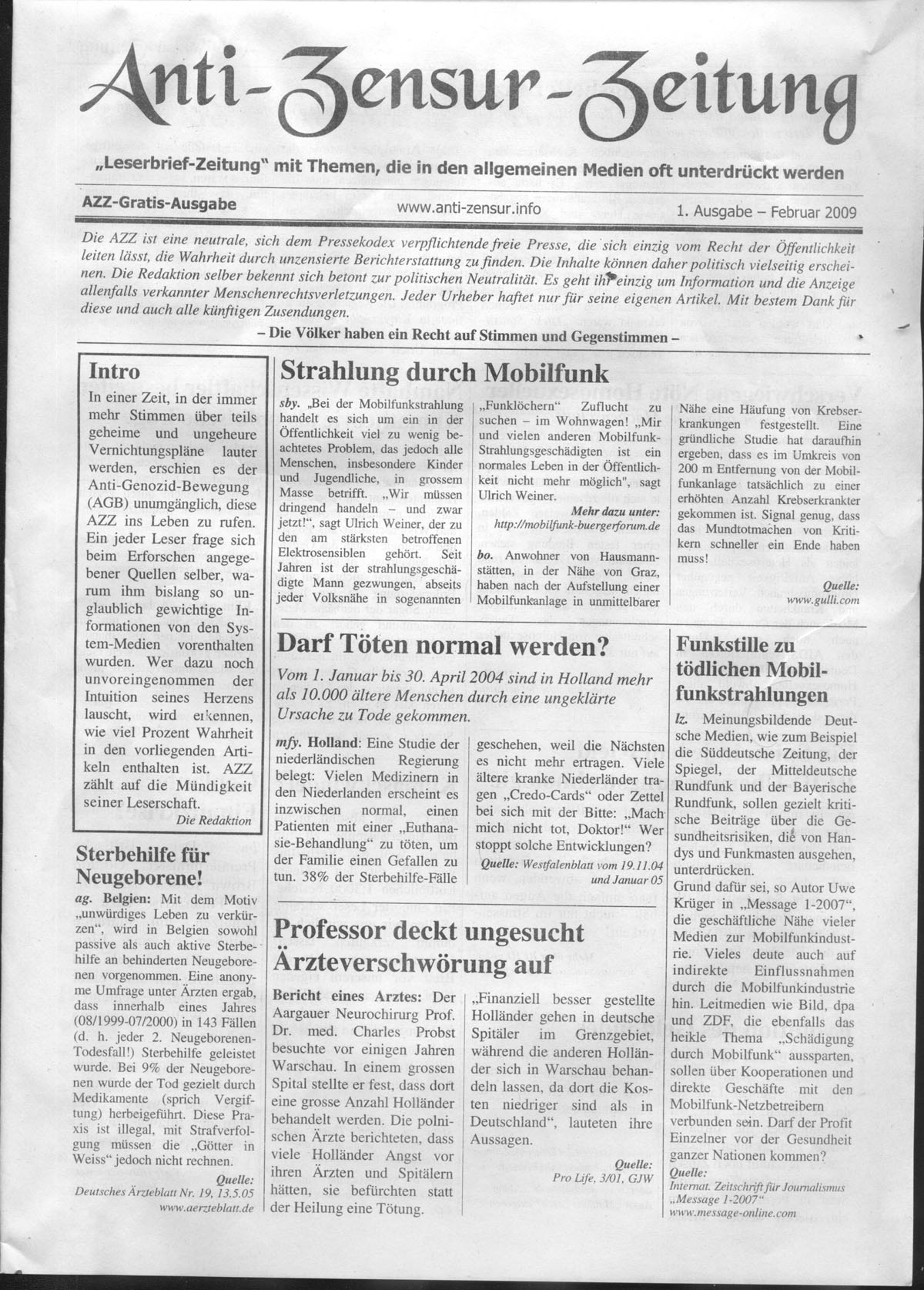 | aktuell | 19:44, 10. Apr. 2009 | 1.200 × 1.674 (387 KB) | Matze (Diskussion | Beiträge) | Titelblatt einer AZZ-Ausgabe |