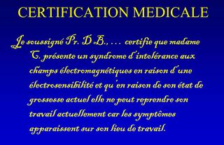 - ↑ Zitat von der ARTAC-Webseite: ..L’encéphaloscan est actuellement le meilleur marqueur (diagnostic) des signes de la "souffrance" cérébrale chez les personnes souffrant d’Électro Hyper-Sensibilité..