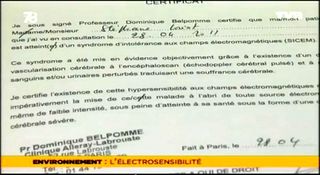 - ↑ http://sante.lefigaro.fr/article/electrosensibilite-le-pr-belpomme-vise-par-une-procedure-disciplinaire-de-l-ordre-des-medecins/