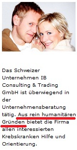 - ↑ ib-consulting & trading GmbH, Hauptstraße 6, CH-8865 Bilten. Geschäftsführer: Peter Halstenbach