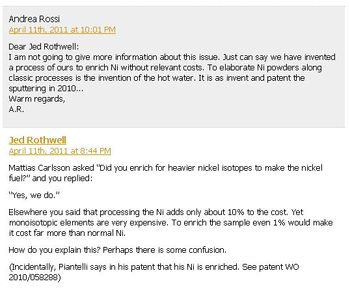 According to Rossi, Bushnell is on the wrong track, at least from a theoretical perspective. “If beta decay explained the reactions in my device, I would have been killed already [by the radiation] and we would have found different isotopes,” Rossi told me. He claims that he has a good handle on the theory, but he won’t disclose it until his patent is granted.