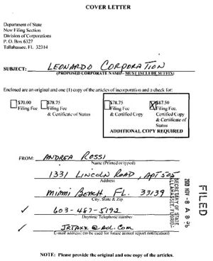 - ↑ Leonardo Corporation, 116 South River Road, Bedford, N.H. 03110 - USA. Webseite: http://leonardocorp1996.com