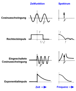 Eine Sinusschwingung hat auch nur dann eine einzige, genau definierte Frequenz, wenn sie weder Anfang noch Ende hat, also unendlich lange andauert. Bei allen anderen Vorgängen, beispielsweise dem Ein- und Ausschalten oder Abklingen eines Schwingungsvorgangs, ist die spektrale Intensität über einen gewissen Frequenzbereich verteilt.