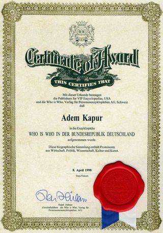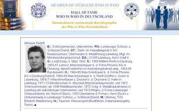 - ↑ Who is Who Verlag für Personenenzyklopädien AG, Alpenstrasse 16, CH-6304 Zug