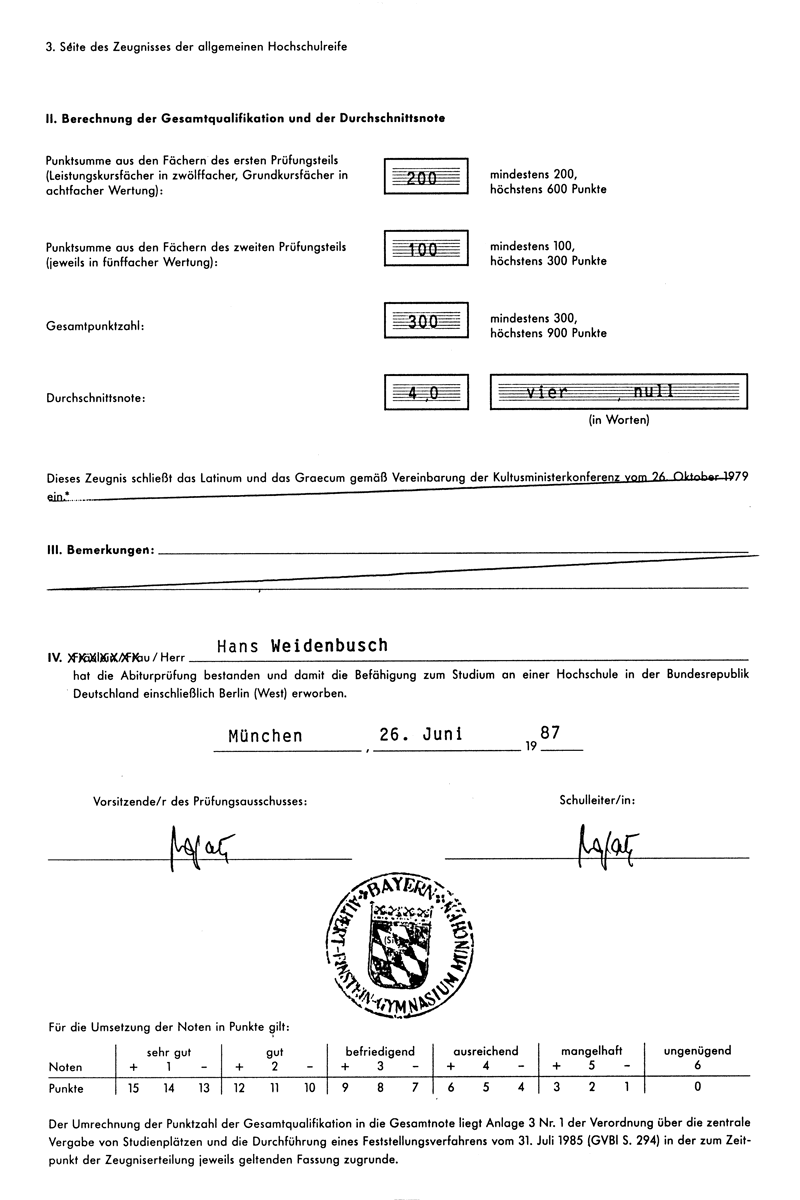 4. Abiturzeugnis Hans Weidenbusch, von ihm selbst verbreitet