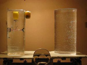 18. http://de.wikipedia.org/wiki/Diskussion:Perpetuum_Mobile Zitat: Warum das nicht gehen kann. Ein schwimmendes Objekt verdrängt immer genau so viel Wasser, wie es selbst wiegt. Es ist also völlig egal, ob ein Schwimmer gehoben wird, oder nur das Wasser alleine. Zum Anheben der Kapillare wird mechanische Energie benötigt. Das gilt besonders dann, wenn die Kapillare mit Wasser gefüllt ist. Wenn man die Kapillare ganz aus dem Wasser heraus zieht, verliert man das gehobene Wasser. Wenn man den Kapillarspalt verengt, dann wird Bindungsenergie frei. Wenn man den Kapillarspalt erweitert, dann wird Bindungsenergie verbraucht. (Kommentar eines Wikipedia - Users Karl Bednarik 06:23, 21. Jan. 2010 (CET)