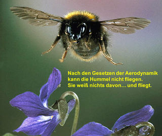 Natürlich können Hummeln fliegen und zwar im Einklang mit Gesetzen der Physik. Hummeln erreichen eine Geschwindigkeit von knapp 11 km/h und schlagen dabei etwa 130 Mal in der Sekunde mit den Flügeln. Die Hummel benötigt eine bestimmte Thoraxtemperatur, um fliegen zu können.[2]