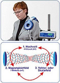 Behandelt wird mit einem statischen Magnetfeld von 7 mT (Milli-Tesla), dem offenbar ein veränderliches Magnetfeld überlagert wird ("Magnetfeld mit Amplitudenmodulation"). Das elektrische Feld soll Hochspannung von 4 kV eingesetzt. Die miteinander kombinierten Felder werden als "Hybridfelder" bezeichnet. Bestandteil der Therapie kann auch eine "Visualisierung" sein.