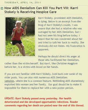 Todesmeldung der HIV-infizierten Karri Stokely im Jahre 2011