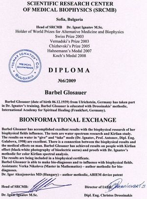 In Sofia betreibt Ignatov ein privates "Scientific and Research Center of Medical Biophysics" (SRCMB, deutsch auch "Wissenschaftliches Forschungszentrum für Medizinische Biophysik" WFMB). Über diese Firma vergibt Ignatov "Zertifikate" an Heiler, deren behauptete Fähigkeiten zur Geistheilung er mit seinen Methoden nachgewiesen habe. Oft sind diese Urkunden außer von Ignatov auch von Christos Drossinakis unterzeichnet.