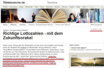 - Sebastian Herrmann: Viadrina: "Komplementäre Medizin" "Immer mehr Spinner". Süddeutsche Zeitung, 31. August 2010