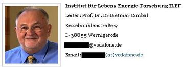 Ein Gastprofessor war zeitweise der Altenburger Tierarzt und Scheinprofessor Dietmar Cimbal.[18] Cimbal bezeichnet sich als astrologischer Ernährungs-, Gesundheits- und Lebensberater. Er ist für die Firma "Medprevent" tätig, die mit pseudomedizinischen Gerätschaften wie dem Prognos handelt, das so genannte Meridiane nachweisen könne. Außer Prognos bewirbt Cimbal das Metascan-System. Auf diversen Webseiten wird er als "Professor" vorgestellt, entweder mit dem Hinweis RUS (für Russland) oder "Internationale Interakademische Union" (IIU). Bei der IIU handelt es sich um eine nicht akkreditierte, private Organisation, die wertlose Scheintitel und Orden verkauft.