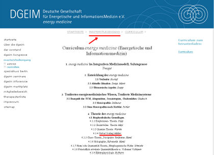 In Zusammenarbeit mit der Deutschen Gesellschaft für Energetische und Informationsmedizin e.V. DGEIM wurde 2010 ein Wahlpflichtmodul "Energy Medicine" angeboten[26]. Zum Inhalt wurde auf den Masterstudiengang Komplementäre Gesundheitswissenschaften des Interuniversitären Kollegs für Gesundheit und Entwicklung in Graz (Österreich) verwiesen, an dem ebenfalls ein von der DGEIM gestaltetes Curriculum Energie- und Informationsmedizin existiert. Die DGEIM wirbt für Therapiekonzepte wie Geistheilung und andere obskure Ideen, in denen Begriffe wie Schwingungen, Resonanz, Energiewellen oder ähnliches vorkommen. Ihr zweiter Vorstand ist Konstantin Meyl. Der Ingenieur hält die Relativitätstheorie für widerlegt und tritt mitunter gemeinsam mit Vertretern des so genannten Lichtfastens auf. Dies sind Menschen, die behaupten, ganz auf Nahrung zu verzichten. Meyl steht vor allem für sein pseudowissenschaftliches Konzept der Skalarwellen - hypothetische elektromagnetische Longitudinalwellen, mit denen sich Krankheiten heilen ließen.[27]