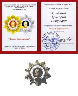 - "Prof." Hartmut Müller, erhielt von der IIU im Jahre 2004 einen "Vernadski-Stern Ersten Grades".