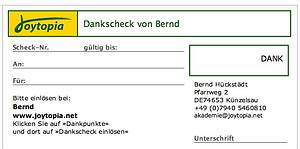 Joytopia ist ein als Firma Joytopia Akademie und Medienproduktion implementiertes Freiwirtschaftsprojekt mit eigener Währung (Dank oder FREE, seit 2011 Gradido). Die Firma ist im Besitz einer Margret Baier, Ehefrau des Joytopia-Erfinders Bernd Hückstädt aus Künzelsau. Das Joytopia-Modell verspricht als utopistische Staatsform Armut, Arbeitslosigkeit, Umweltverschmutzung, Staatsverschuldung und Inflation verhindern zu können.[1] Inzwischen versucht Hückstädt sein Konzept auch unter dem Namen Gradido. Das Kunstwort stehe für Gratitude (Dankbarkeit), Dignity (Würde) und Donation (Spende, Schenkung).