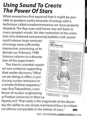 - Sonofusion (auch Bubble fusion, offenbar Datenfälschung)