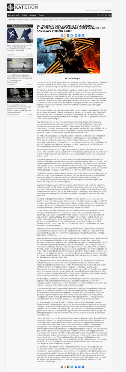 Artikel von Alexander Dugin zum gleichen Thema (englisch, 2022)