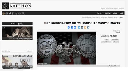 Nach einem Bericht des britischen Jewish Chronicle bestehen Verbindungen der Website Katehon zu russischen Geheimdiensten. Für die englischsprachige Seite von Katehon werden Dugins Texte von Nina Kouprianova übersetzt, der Ehefrau des amerikanischen AltRight-Aktivisten Richard Spencer.[27]