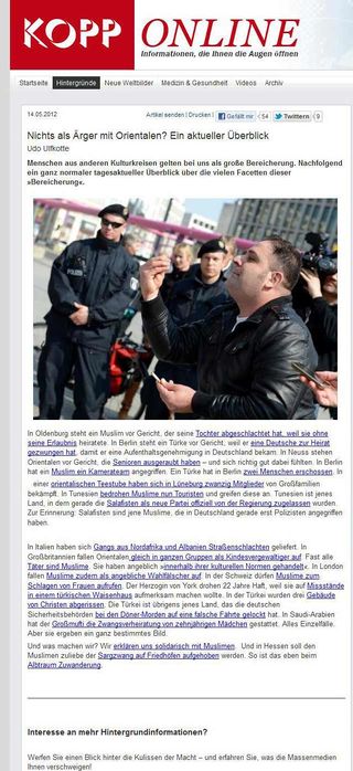 Stimmungsmache gegen "Orientalen" und Muslime beim Kopp Verlag