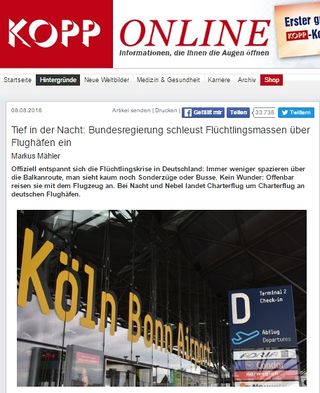 Am 8. August 2016 berichtete der Kopp-Verlag im Internet über angebliche heimliche Einreisen von Flüchtlingen über den Flughafen Köln-Bonn. Autor Markus Mähler: