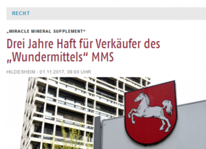 • Die Regierung von Oberbayern stuft MMS als Arzneimittel ein. Da es als solches nicht zugelassen ist, darf es auch nicht mehr vertrieben werden.[52]