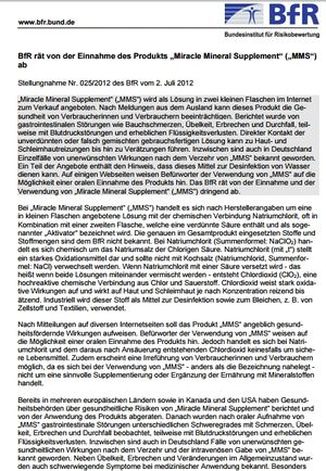 Warnung des Bundesinstitutes für Risikobewertung (BfR) vor Scharlatanerie mit MMS