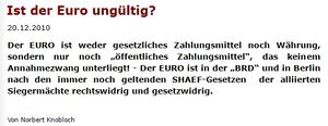 Behauptungen über einen "ungültigen" Euro als Zahlungsmittel (Autor Norbert Knobloch, MMNews 20.12.2010)