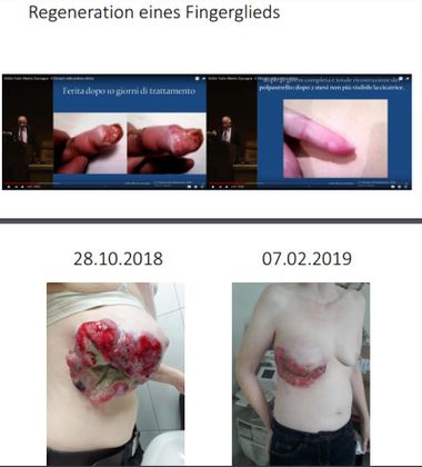 von Manfred Doepp auf seinen privaten Webseiten verbreitete Bilder von angeblichen Wuderheilungen durch Wunderallheilmittel Citozym.Oben Hundbiss bei 70 jährigem Mann (unbekannter Behandler). Unten: Brustkrebs bei einer Patientin von Manfred Doepp.[1][2]