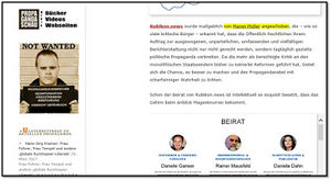 - ↑ Zur Dokumentation ist der genannte Artikel auf der Diskussionsseite des vorliegenden Psiram-Eintrags zu sehen https://www.psiram.com/de/index.php/Diskussion:Rubikon_News