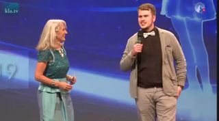 Aufruferin zum "Sturm auf den Reichstag" Tamara Kirschbaum am 29.8.2020, links "Aktivist Mann" Matthäus Westfal[1]