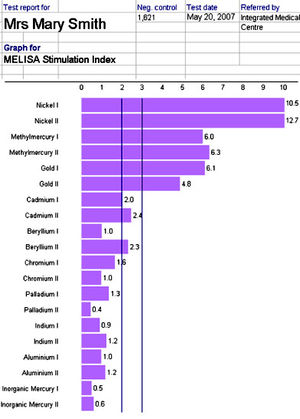 - Bei SI ≥ 3 gilt der Test als positiv, d.h. gilt als „Nachweis einer Sensibilisierung“ gegen das getestete Metall