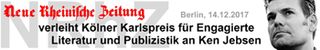 Die NRhZ vergibt den Vanity-Preis Kölner Karlspreis für engagierte Literatur.