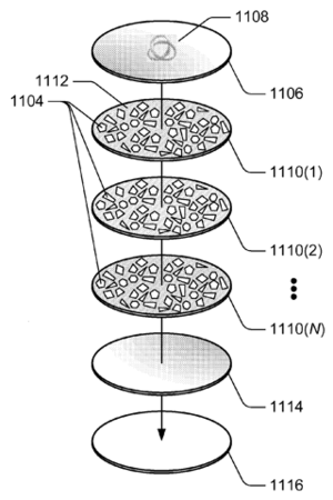 Das paramagnetische Material (1104) befindet sich in mehreren Schichten (1110) zwischen Träger- und Deckfolien[1]