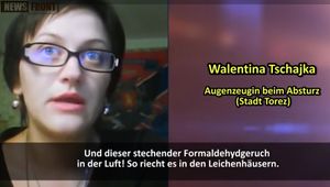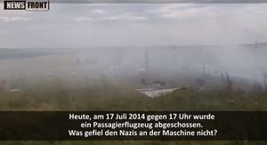In einem nur als Machwerk zu bezeichnenden Video von News Front ("Provokation in US Manier", hier aus Rücksicht vor Angehörigen der Opfer nicht verlinkt) wiederholt News Front absurde und die Opfer verhöhnende Verschwörungstheorien, die bereits am 18. Juli 2014 vom prorussischen Rebellenführer Girkin/Strelkov (russischer Staatsbürger und ehemaliges FSB-Mitglied) verbreitet wurden. Hochgeladen wurde das Video am 19. September 2015. Demnach hätte es nach Girkin bereits vor dem Abschuss Leichen an Bord des Flugzeugs gegeben. News Front zeigt eine angebliche Zeugin mit Namen Walentina Tschajka aus Torez, die behauptet, dass sie am Absturzort gewesen sei und "blutleere" Leichen "wie Mannequins" gesehen habe, die nach Formalin (Formadelhyd) gerochen hätten: "Ich war dort. Am Absturzort. Eigenartig war, dass nirgendwo Blut zu sehen war. Die Leichen waren gelb, wie Mannequins... Es waren viele Vögel dort. Um die Vögel gab es Blut - sie waren lebendig...Und dieser stechende Formaldehydgeruch in der Luft! So riecht es in den Leichenhäusern... Auf diese Weise soll suggeriert werden, dass sich an Bord in Formalin "eingelegte" Leichen befunden hätten. Das Video zeigt zahlreiche Leichen am Absturzort, viele auch mit blutenden Wunden. Gezeigt werden auch Leichen von Kindern, das Ganze mit Musik und Schaukelbewegungen der Kamera theatralisch untermalt. News Front Chef ergänzte: ..Es wurden zwei Ziele verfolgt. Einerseits die Volkwehr von Donbass in den Augen der internationalen Öffentlichkeit als Terroristen darzustellen. Anderseits den Druck auf Russland zu rechtfertigen und den Weg für neue Sanktionen ebnen. Beide Ziele wurden im Prinzip erreicht."