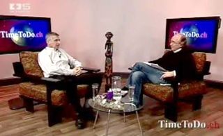 Braunesoteriker und MLM-Anbieter Jo Conrad (links) und Schweiz 5 - Moderator Norbert Brakenwagen in der Sendung TimeToDo