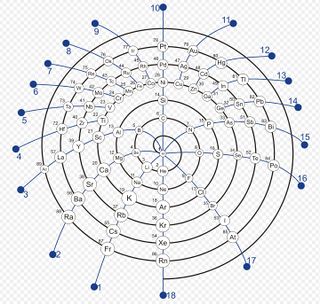 - Alternatives Periodensystem nach Walter Russell (1871-1963, amerikanischer Kunstmaler, Mystiker, Medium und autodidaktischer Philosoph. Er war Erfinder der Kosmogonie.