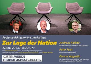 Peter Feist mit Andreas Kalbitz (AfD) und Dennis Augustin („Heimat und Identität“. Wegen einer Rede auf einer Veranstaltung der "Heimattreuen Deutschen Jugend" (HDJ) wurde Augustin aus der AfD ausgeschlossen, 2023)