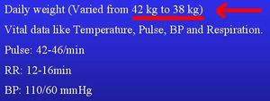 Zur wichtigen Frage des Körpergewichts und der Gewichtsveränderung während der Untersuchung gibt es erstaunlicherweise so gut wie keine Angabe. Zu erfahren ist lediglich, dass es zu einer Verringerung des Gewichts gekommen sei. Andererseits wird sein Körpergewichts als "täglich schwankend" bezeichnet, mit Werten von 42 bis 38 Kilo. Bei einer Körpergröße von 150 cm sei sein "body mass index" (BMI) 16,89. Ein Gewichtsverlust während eines Zeitraums kontrollierten Nahrungsentzugs ist mit der Hypothese kompatibel, dass es während des Versuchs zu einer Änderung der Ernährungsgewohnheiten kam. Das gleiche Phänomen wurde auch bei Hira Ratan Manek (19 Kilo Gewichtsverlust) sowie bei Michael Werner (mehr als zwei Kilo Gewichtsverlust) beobachtet, der ebenfalls behauptet, ohne herkömmliche Nahrung leben zu können und der während einer Überwachungsphase Gewicht verlor. Hira Ratan Manek, der behauptet, nie zu essen, wurde jahrelang nachgesagt, heimlich zu essen, wobei er sich dafür insbesondere die Nachtstunden aussuchte, um nicht beobachtet zu werden. Im Juli 2005 gelang es einem Filmteam, ihn bei einem Besuch eines indischen Restaurants in den USA zu filmen.[11]