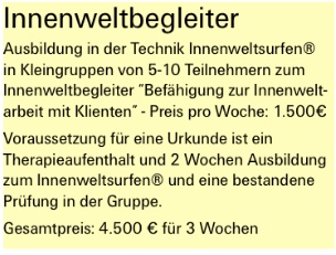 - "... seit vielen Jahren bieten wir Therapieaufenthalte zur Selbstheilung an - zur Hintergrundbearbeitung von Krankheiten speziell bei Krebs - Wichtige Information! Die Erstsitzung ist ein "Profiling" - ein Aufdecken der im Unterbewusstsein schlummernden Konflikten aus der Kindheit und dem Familienenergiefeld."