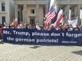 - ↑ Wortlaut laut berliner Tagesspiegel: "Wir schreiben heute hier in Berlin Weltgeschichte. Guckt euch um, die Polizei hat die Helme abgesetzt. Vor diesem Gebäude (gemeint ist der Reichstag, Anm. d. Red) und Trump ist in Berlin. Die ganze Botschaft ist hermetisch abgeriegelt, wir haben fast gewonnen. Wir brauchen Masse. Wir müssen jetzt beweisen, dass wir alle hier sind. Wir gehen da drauf und holen uns heute, hier und jetzt unser Hausrecht. Wir werden gleich diese komischen kleinen Dinger brav niederlegen und gehen da hoch und setzen uns friedlich auf Treppe und zeigen Präsident Trump, dass wir den Weltfrieden wollen und dass wir die Schnauze gestrichen voll haben. Wir haben gewonnen."